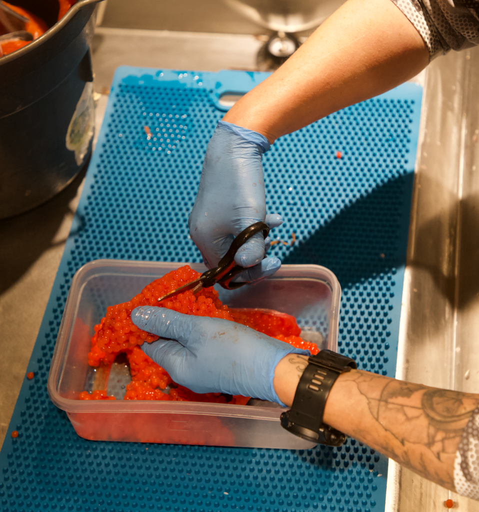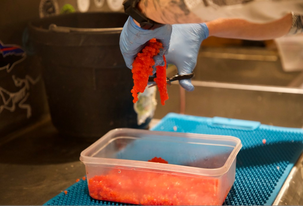 When gutting the fish, I place the roe into a container until I am ready for the curing method. I typically cure the roe once I’m done filleting the fish.